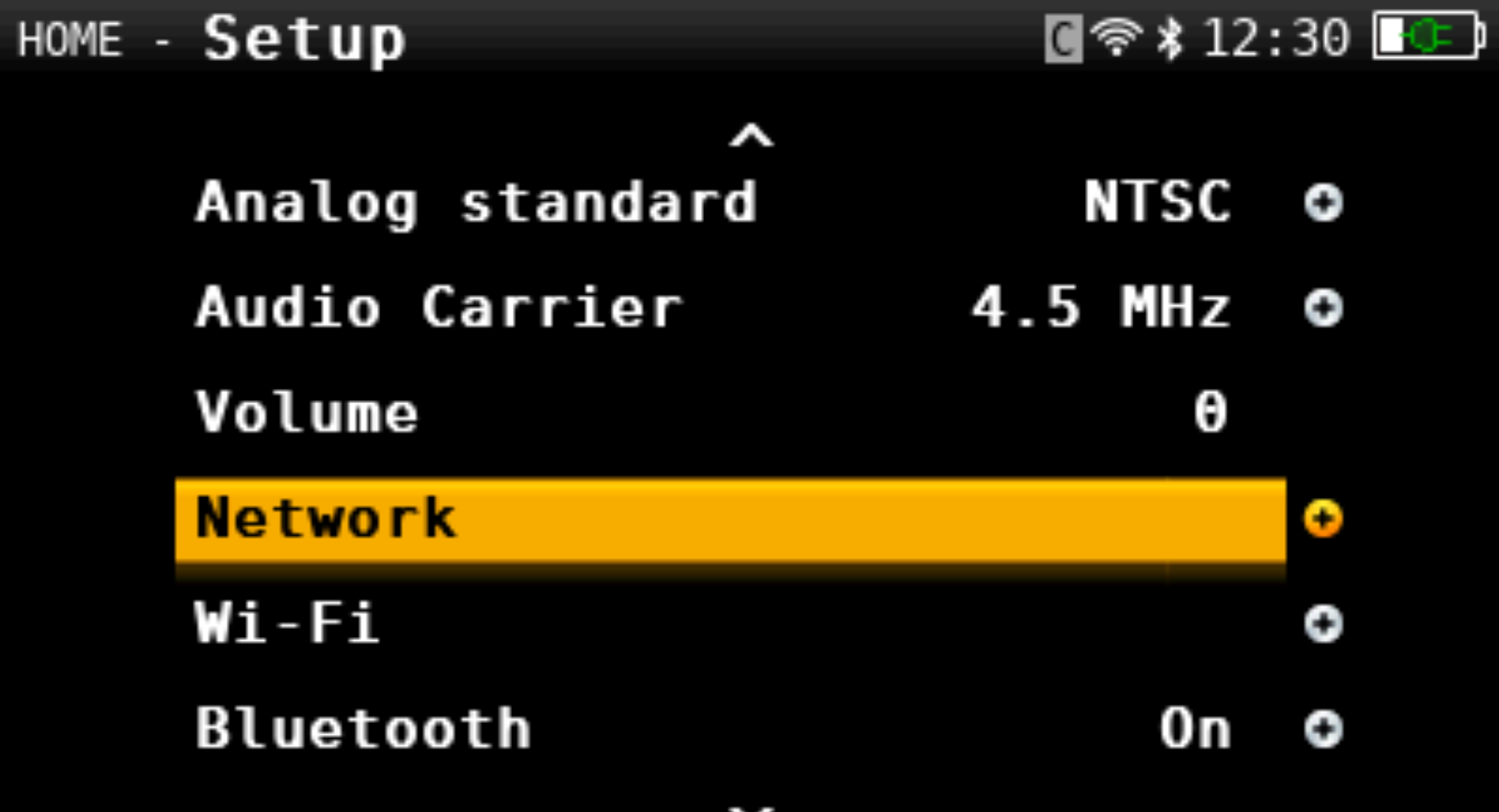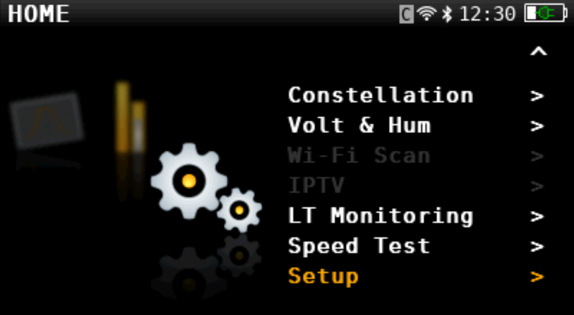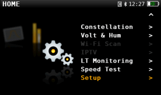 On the home screen, scroll down to Setup option or press the settings/gear button.