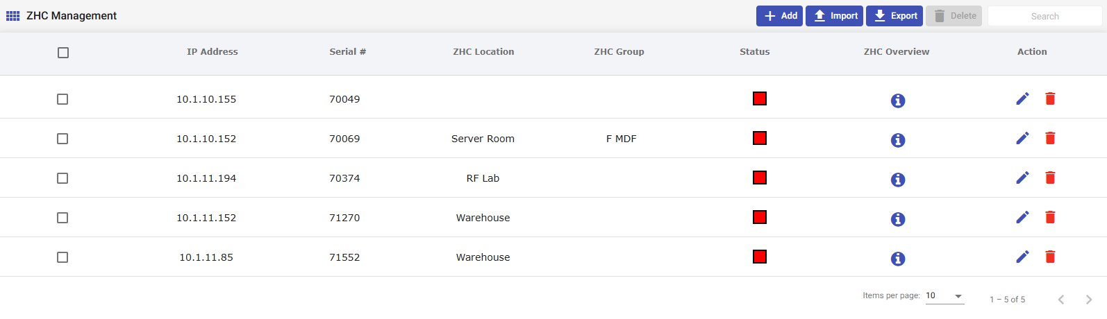 - After you complete the prompt and select Add, the ZHC appears in the ZHC Management list. From there you can view its status and overview and make configuration changes as needed.