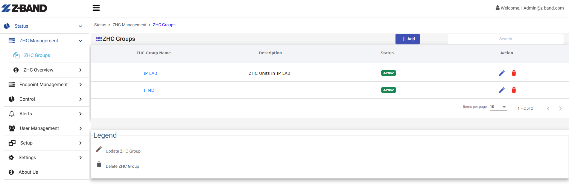 5. Once you Click Add, your group will now be listed in ZHC Groups.