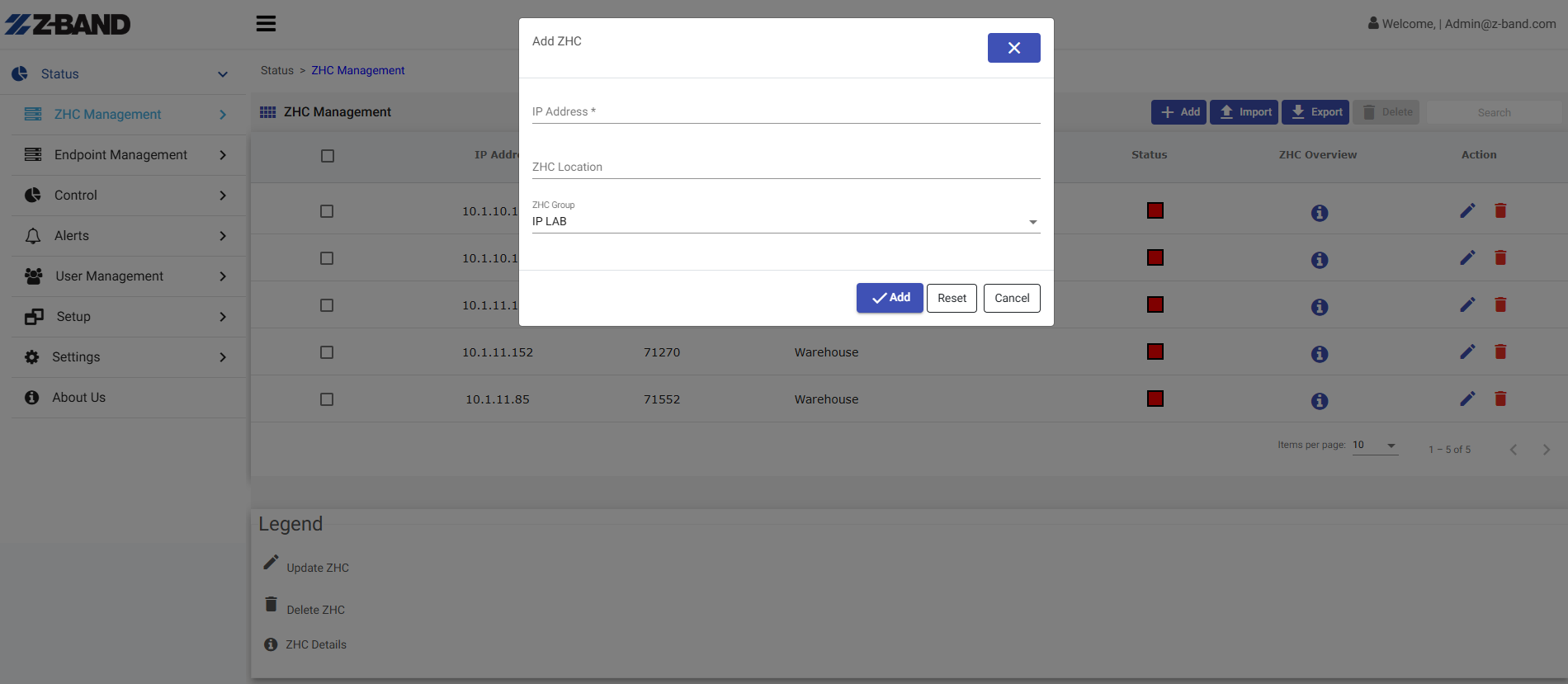 ZHC Insight management platform.